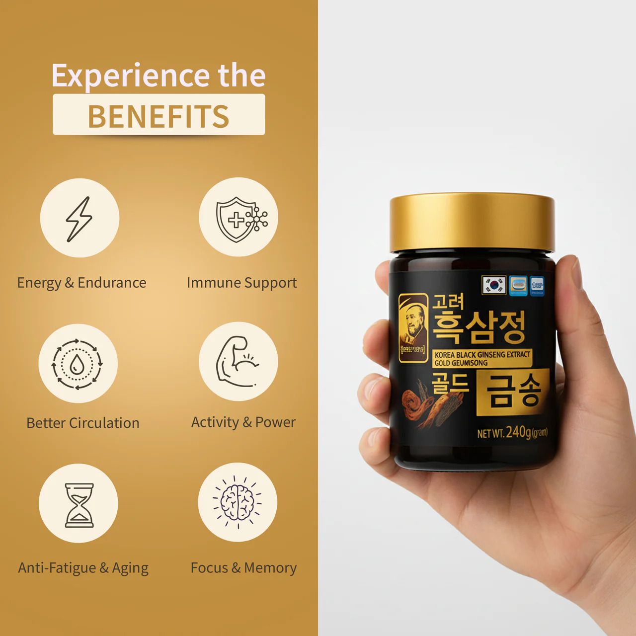 مزيج فريد يجمع بين الجينسنغ الأسود الكوري + فطر الريشي + فطر الكورديسيبس — ثلاث مكونات نادرة تتآزر معًا لتمنحك: